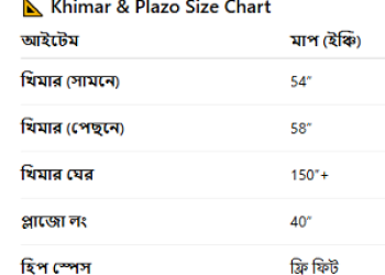 📏 খিমার: সামনে ৫৪”, পেছনে ৫৮” | ঘের ১৫০+